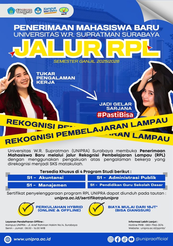 Kerja sudah lama tapi belum punya ijazah S1? Program RPL di UNIPRA adalah solusinya. Daftar sekarang dan raih gelar lebih cepat!